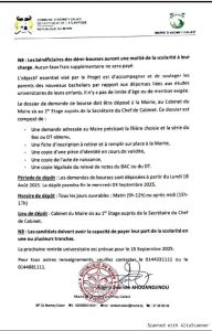La mairie invite donc les nouveaux bacheliers à saisir cette opportunité unique et à se rapprocher des services compétents pour s’informer sur les conditions et modalités d’accès à ces bourses.
